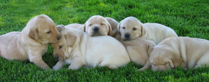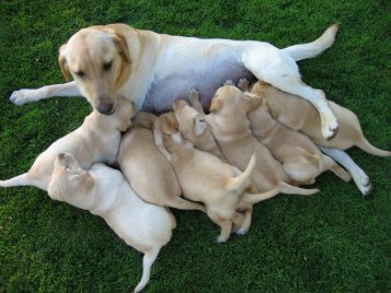 Ritz with her litter by Boomer | |